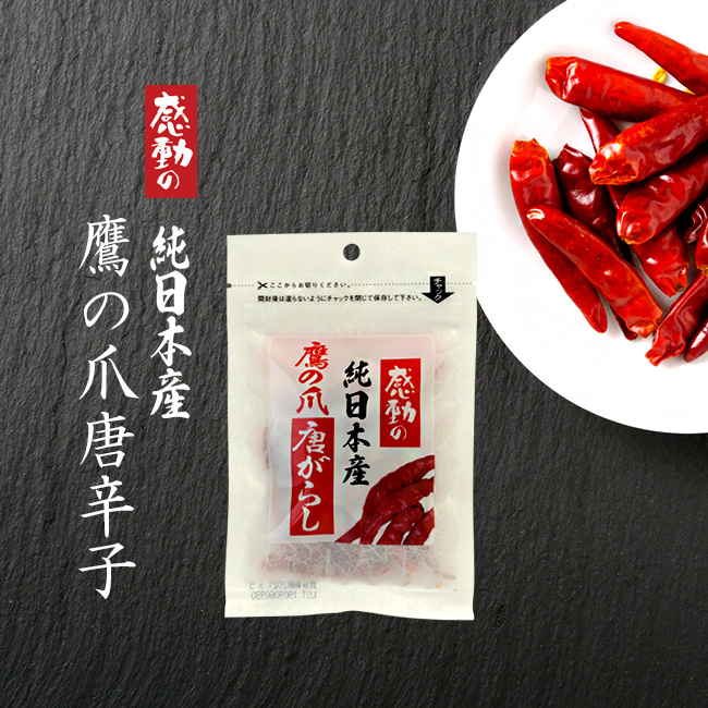 希少な国産の唐辛子を使用した鷹の爪唐辛子です。