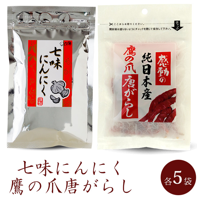 七味にんにく 90g 純日本産 鷹の爪唐がらし 8g 各5袋 袋タイプ 詰め替え 早池峰 中村食品 メール便対応