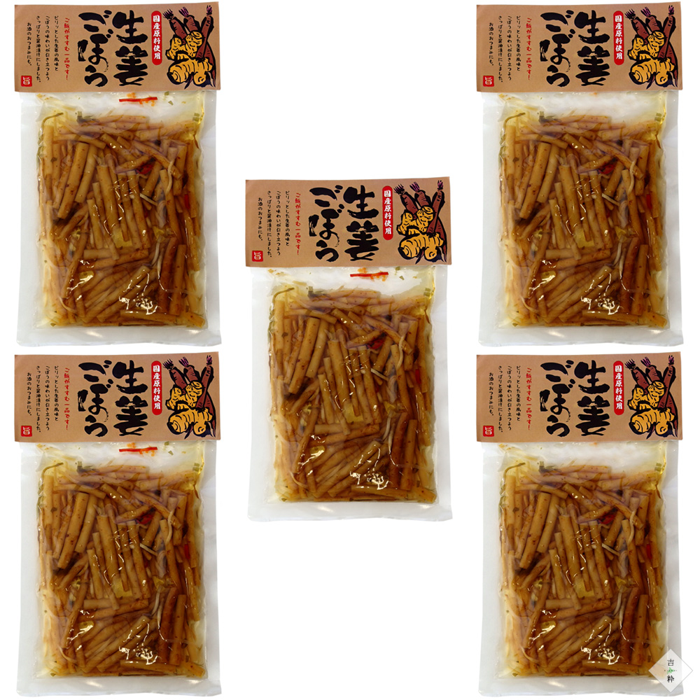 生姜ごぼう 130g×5個 国産 ピリ辛 醤油漬け シャキシャキ お漬け物 惣菜 国産原料使用 メール便対応