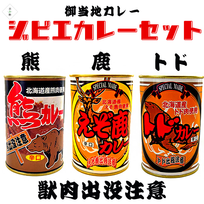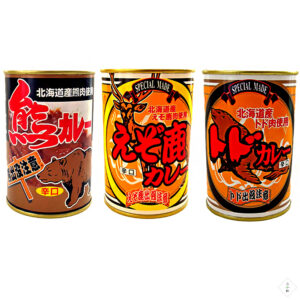 北海道のジビエを十分に満喫できる3種類(熊・えぞ鹿・トド)カレーセットです。一見普通のカレーのようですがご賞味いただくと、ジビエならではの食べたことがないしっかりした食感と味が口の中に広がります。1缶で約2人前のボリュームです。