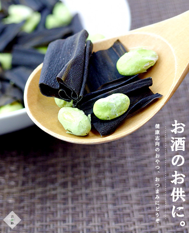 健康志向の方にも、昆布好きな方にも喜ばれる【パリパリ昆布と十勝産枝豆】です。食感が面白い昆布のチップスと、塩味が効いた枝豆で小腹が満足するちょっとオシャレなおつまみです。