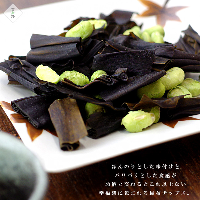 ほんのりとした味付けと食感が楽しめる昆布チップスと、十勝産塩枝豆は相性が良いです。海と大地の自然の健康食の融合は、もう誰も食べてるあなたを止めることは出来ない。そんな北海道の御馳走です。