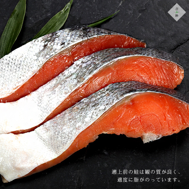 適度に脂がのっており荒巻に適しています。半身真空にした新巻鮭の切身です。北の海が誇る幸をいろいろな味わいでお楽しみ下さい。