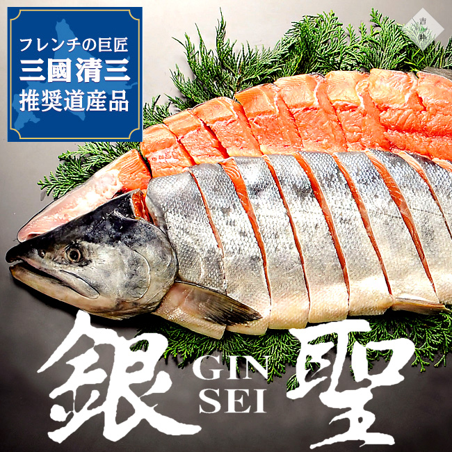 銀聖 三國清三推奨道産品 漁吉丸の銀聖 新巻鮭姿切身 2.5kg 4分割真空 フレンチの巨匠三國推奨 高級ブランド鮭
