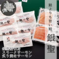 厳しい基準をクリアした日高沖で漁獲された鮭、『銀聖』。このブランド鮭を様々な食べ方で楽しめる【銀聖詰合せギフトセット】は解凍するだけで美味しくお召上がりいただけるギフトです。