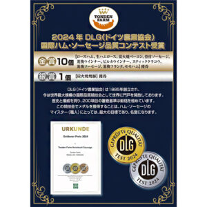 ドイツの農業協会が主催する国際ハム・ソーセージ品質コンテストにおきまして、2024年度もトンデンファームの商品が受賞いたしました。