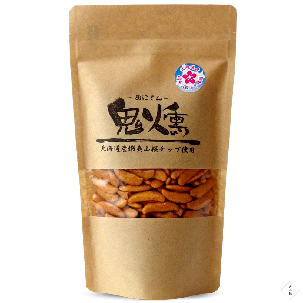 鬼燻 柿の種 100g 北海道産蝦夷山桜チップ使用 燻製カキノタネ おつまみ メール便対応