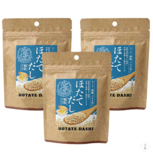 原材料:ホタテだし顆粒(でん粉、乳糖、食塩、魚介エキスパウダー、たん白加水分解物、粉糖、その他)(国内製造)、帆立粉末、(一部に小麦・乳成分・大豆を含む)