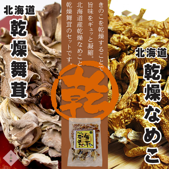 北海道産乾燥舞茸と、北海道産乾燥なめこのお徳なセットです。きのこは、食物繊維やミネラルなどの栄養素を豊富に含んだ低カロリー食品です。最近では、健康志向の高まりなどとも相まって、注目されている食材のひとつです。