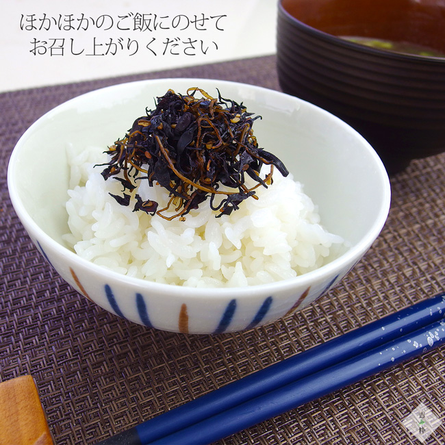 爽やかな香りが食欲をそそり、昆布とひじきの食感の違いが味に深みを出しています。国産の厳選素材で仕上げた紫蘇ひじきの佃煮。ご家庭でぜひご賞味ください。