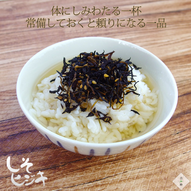 しその風味と共に温かいご飯に混ぜて、おにぎりにしたり、お茶漬けにもぴったりです。野菜と和えて調理しても美味しく召し上がれます。